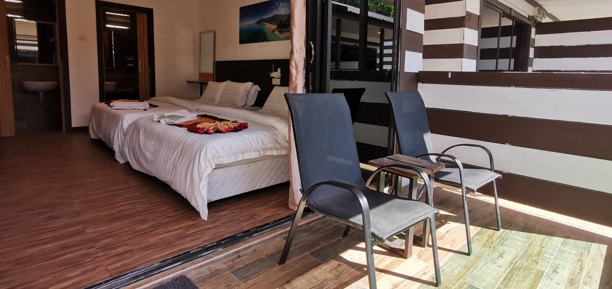 Retreat to your comfortable Standard Room/Chalet for two or Standard Family Room/Chalet for four. Your Standard & Standard Family Room balcony overlooks the pool whilst the Standard and Standard Family Chalet is located close to the beach. Experience a good night’s sleep in air-conditioned comfort or enjoy the coolness of the fan. These rooms and chalets can accommodate an extra bed (mattress).