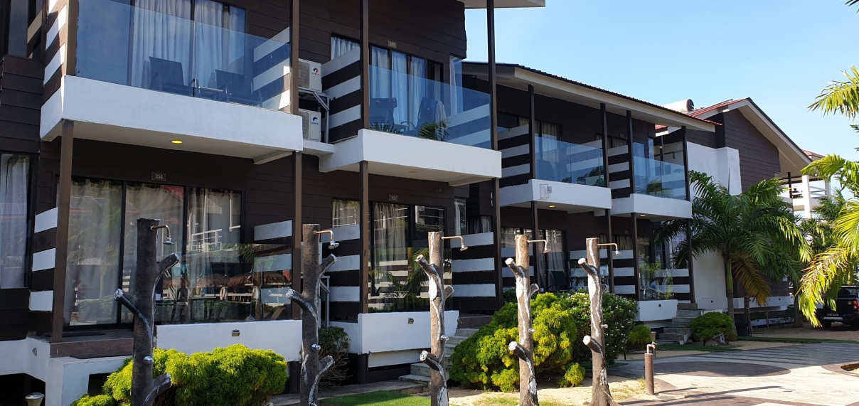 After a day of exploration, slip in between crisp sheets and enjoy the cool air-conditioning in your spacious abode. Be soothed by the gentle sea breeze as you catch a glimpse of the pool and enjoy gorgeous partial views of the South China Sea from your balcony in your Superior Family Chalet for four. An extra bed (mattress) can be accommodated.